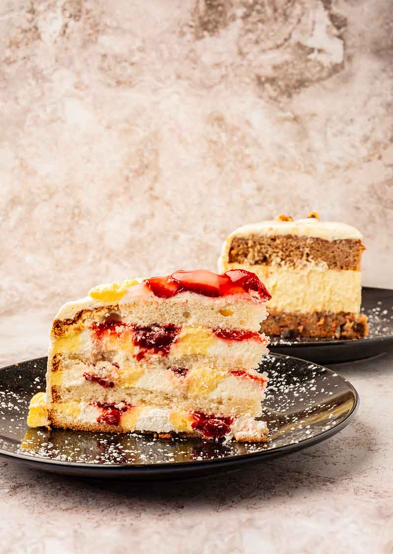 - Cakes: Carrot Cake • Chocolate Raspberry • Chocolate Trio